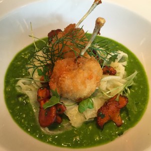 The earl grey tea smoked salmon was a light way to start the meal, with the little bursts of citrus. Next, the savoury porridge with frogs legs. A stroke of culinary genius and easily the best frogs legs I’ve ever had, beating the Parisians at their own game here! Lastly, the meat fruit. If you only order one dish, this has to be it. It looks, smells and feels like a mandarin – until you cut through the citrus gel to find the chicken liver parfait inside. A masterpiece in itself. For dessert I had the chocolate bar – a biscuit base with passionfruit jam, chocolate ganache and ginger ice cream. And just when you think it’s all over, you’re presented with an orange blossom chocolate ganache in a shot glass with a caraway seed biscuit to dip in it. A great way to end the meal!